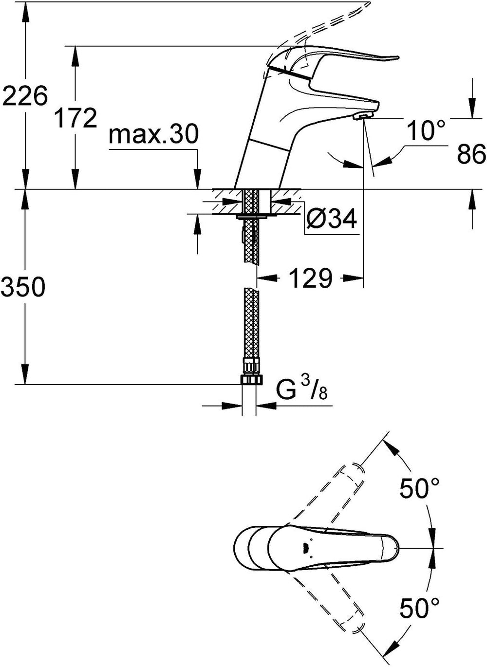 GROHE Eurosmart - Einhand- Waschtischarmatur (wassersparend, L-Size, Schwenkbereich 360°), chrom, 23