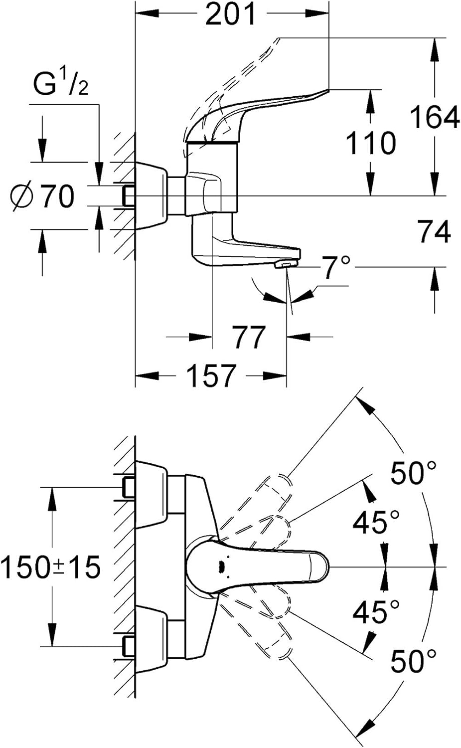 GROHE Eurosmart - Einhand-Brausebatterie (wassersparend, langlebige Oberfläche, Wandmontage), chrom,