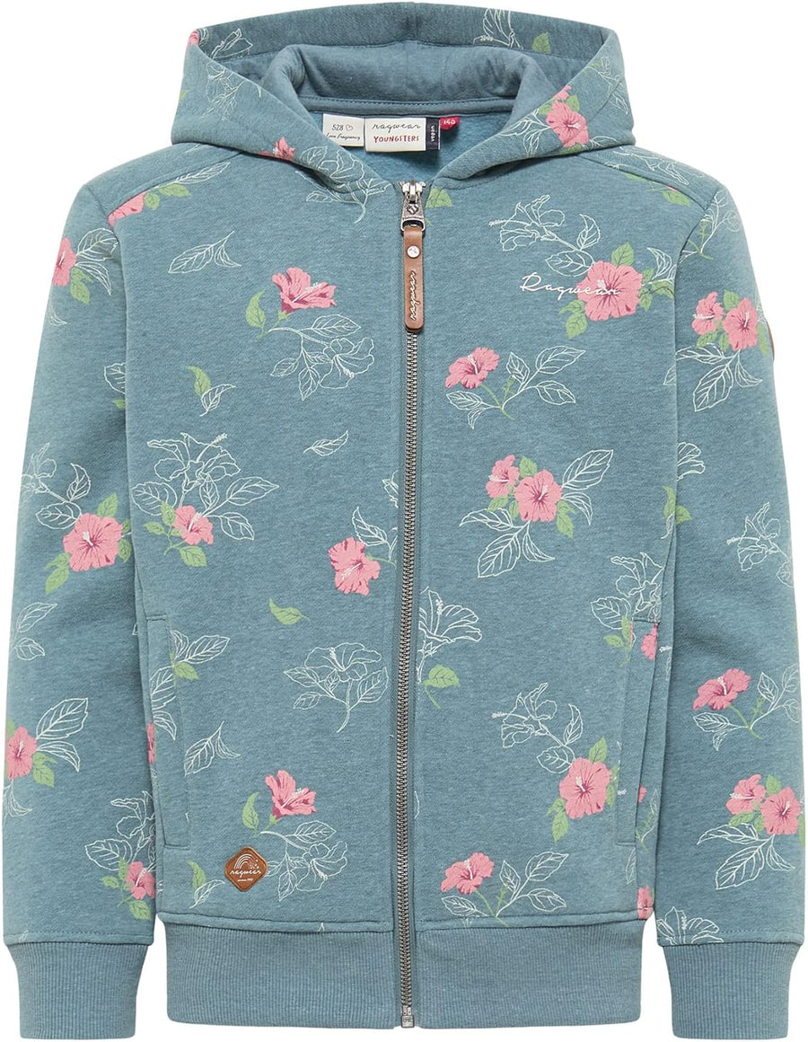 Ragwear THEA Flowers Zip Mädchen Sweatjacke mit Kapuze Cardigan Strickjacke Sweatshirt mit Blumen Mo
