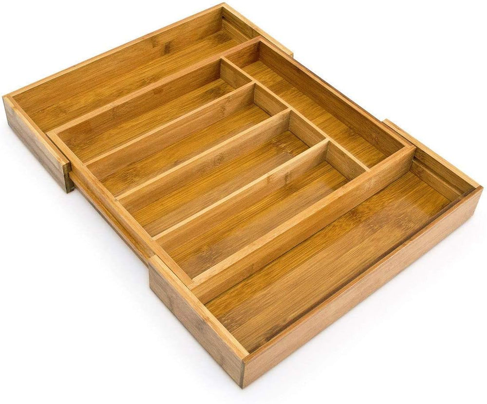 Relaxdays Besteckkasten Bambus, 5-7 Fächer, Breite 31,5-49 cm, natur & flach, HxBxT: 5 x 9,5 x 40 cm