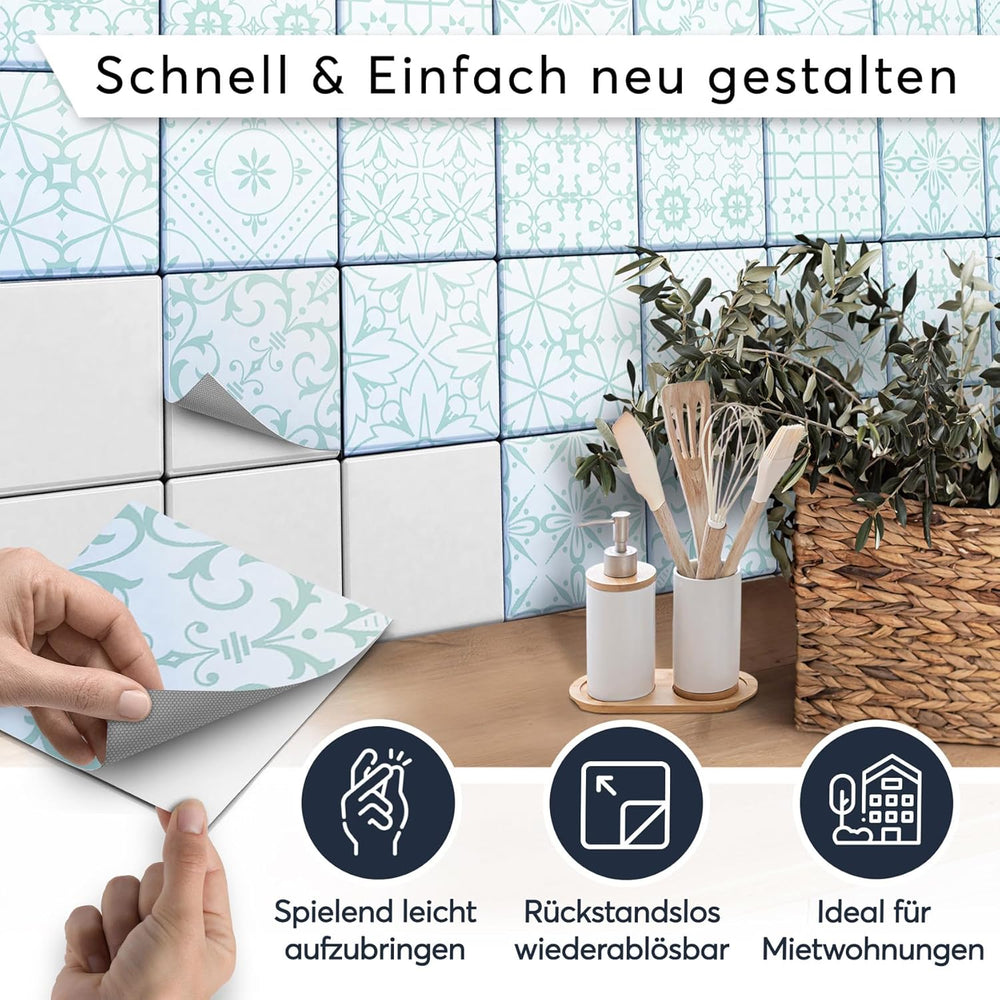Fliesen-Folie I Dekorative Fliesensticker für Küche, Bad und Fliesenspiegel - Selbstklebende Fliesen