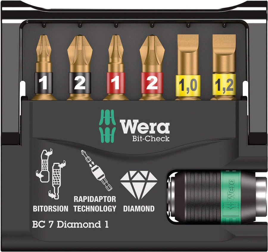 Wera Bit-Sortiment, Bit-Check 7 Diamond 1, 7-teilig, 05057416001 Bit-Check 7 Diamond 1 Single, Bit-C