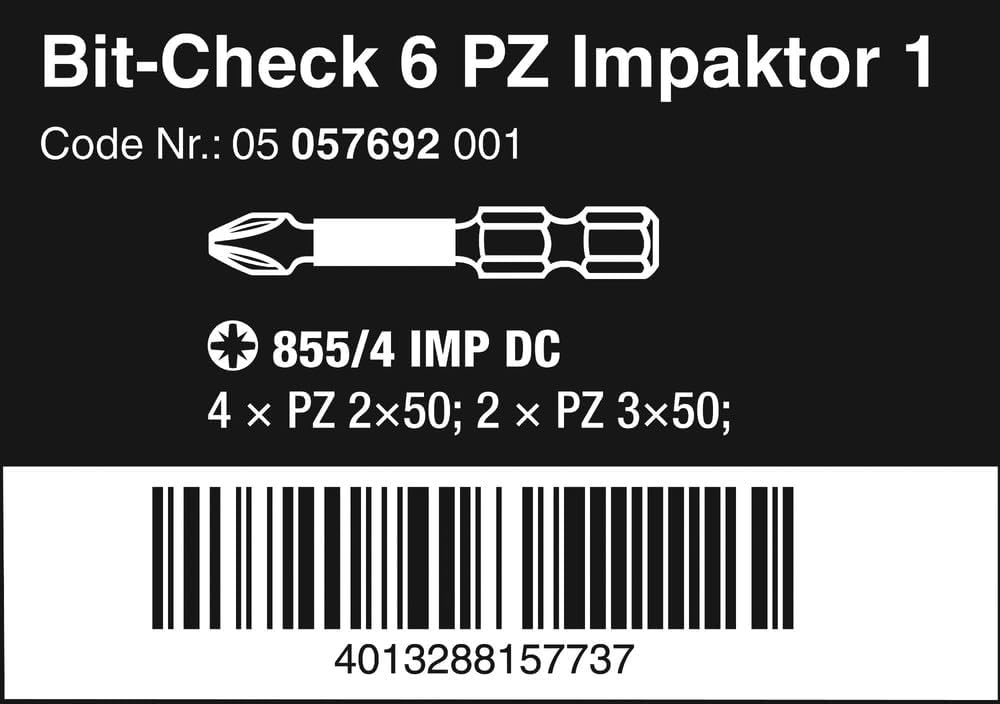 Wera Bit-Sortiment, Bit-Check 6 PZ Impaktor 1, 6-teilig, 05057692001 Bit-Check 6 PZ Impaktor 1 Singl