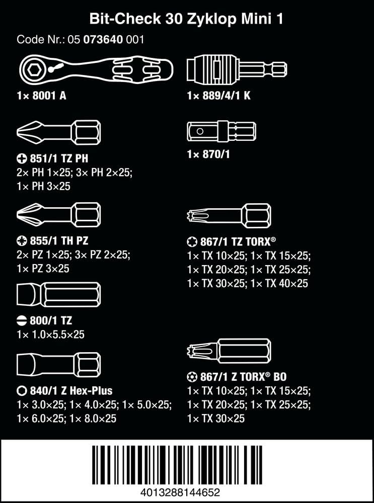 Wera Bit-Sortiment, Bit-Check 30 Zyklop Mini 1, 31-teilig, 05073640001, Bit-Check 30 Zyklop Mini 1