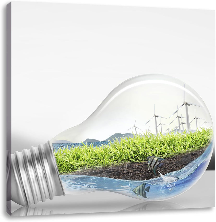 Pixxprint grüne Energie in Glühbirne schwarz/weiss, Format: 70x70 auf Leinwand, 70x70
