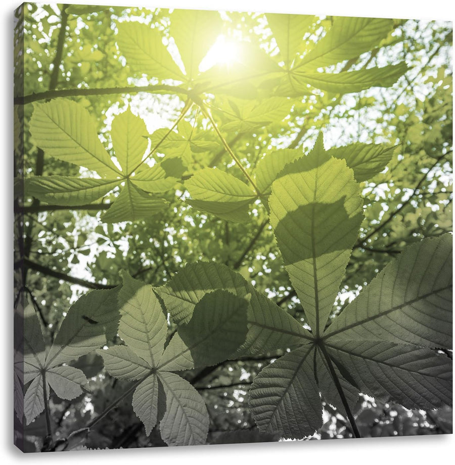 Pixxprint Grüne Kastanienblätter schwarz/weiss, Format: 70x70 auf Leinwand, 70x70