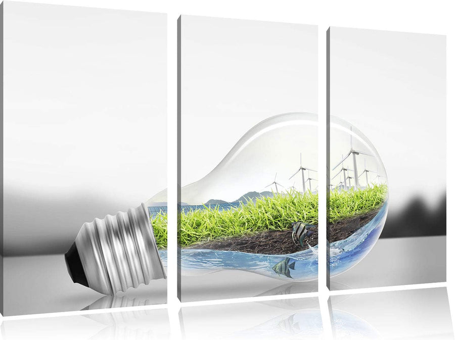 Pixxprint grüne Energie in Glühbirne als Leinwandbild | Grösse: 3 Teilig (120x80) | Wandbild| Kunstd