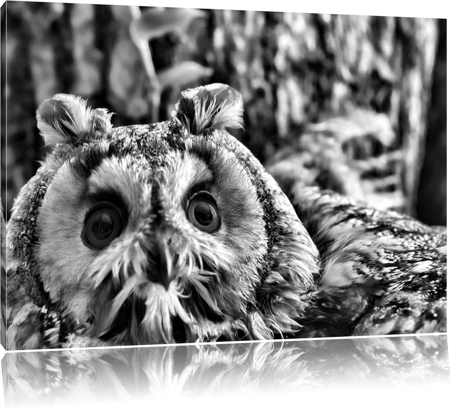 Pixxprint Grünäugige Eule als Leinwandbild/Grösse: 100x70 / Wandbild/Kunstdruck/fertig bespannt, 100