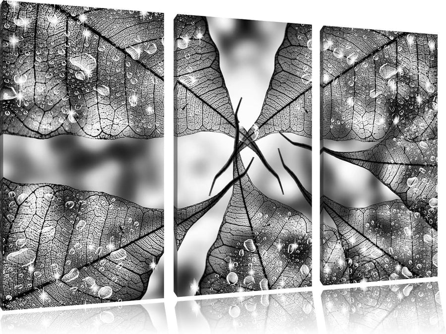 Pixxprint grüne Blätter mit Wassertropfen schwarz/weiss, Format: 70x100 auf hochkantiges Leinwand, 7