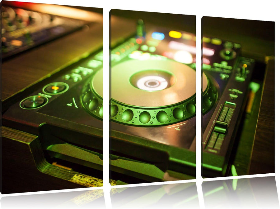 Pixxprint Grün beleuchteter DJ Pult als Leinwandbild/Grösse: 3 Teilig (120x80 cm) cm/Wandbild/Kunstd