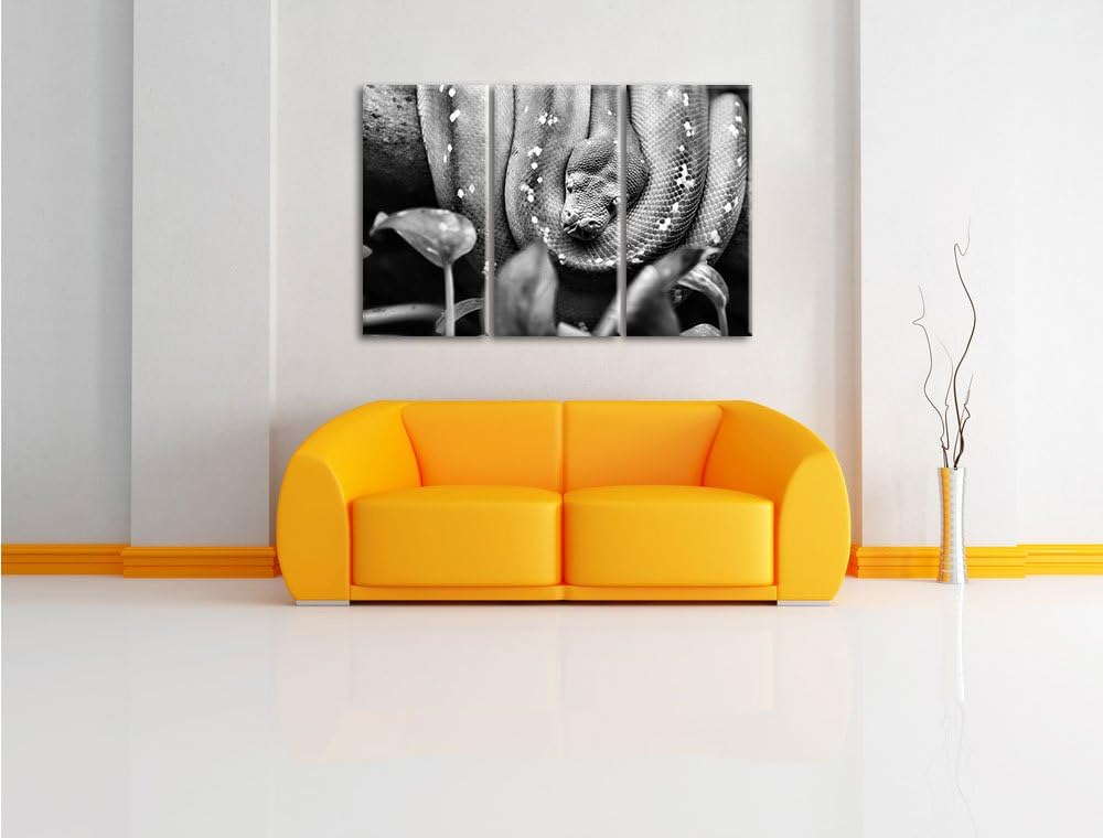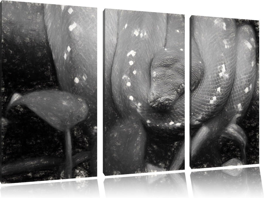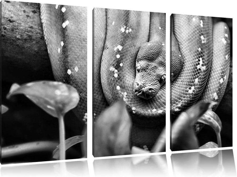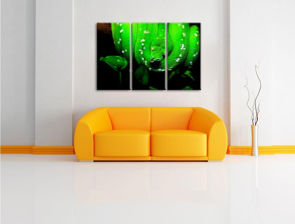 Pixxprint grüne Schlange als Leinwandbild/Grösse: 3 Teilig (120x80) cm/Wandbild/Kunstdruck/fertig be