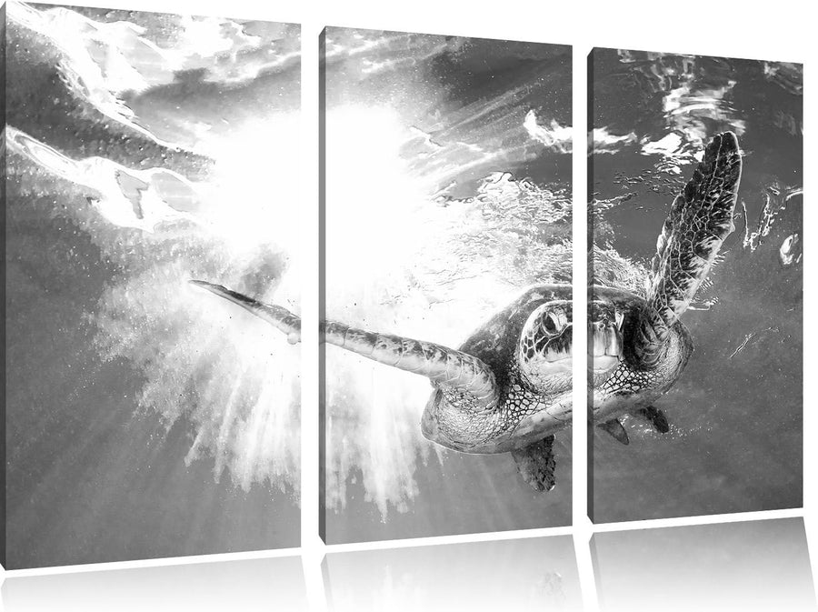 Pixxprint Grüne Meeresschildkröte Kunst B&W als Leinwandbild/Grösse: 3Teilig (120x80) / Wandbild/Kun