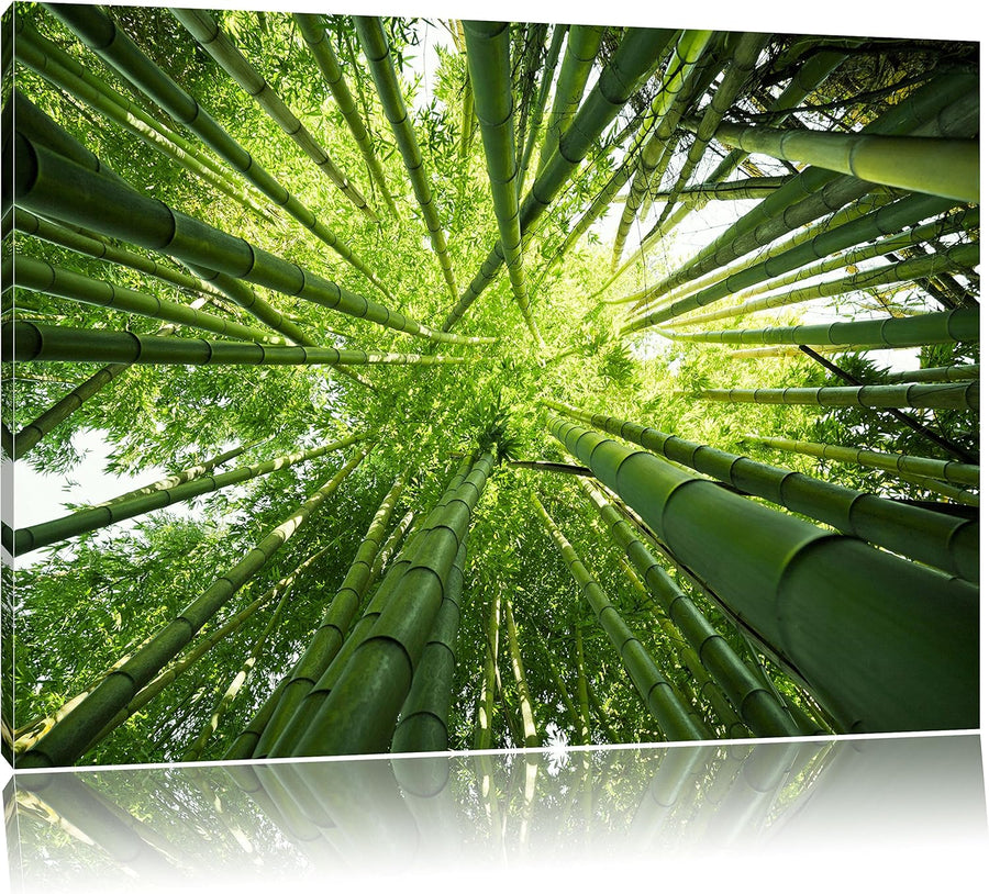 Pixxprint Grüner frischer Bambus als Leinwandbild/Grösse: 100x70 / Wandbild/Kunstdruck/fertig bespan