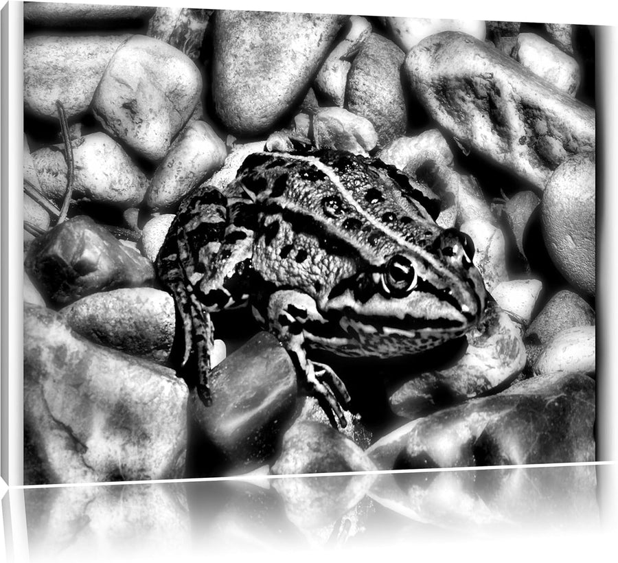 Pixxprint grüne Kröte in Steinbett als Leinwandbild/Grösse: 100x70 / Wandbild/Kunstdruck/fertig besp