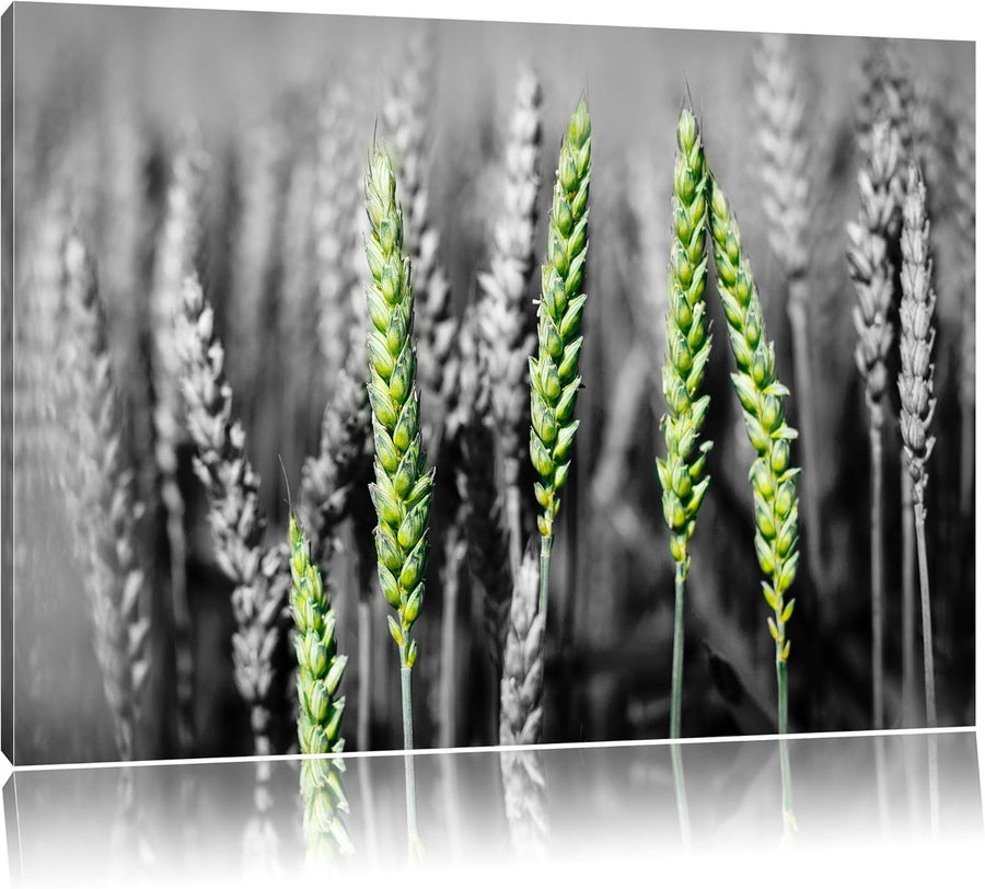 Pixxprint Grüne Weizen auf dem Feld Kunst als Leinwandbild/Grösse: 100x70 cm/Wandbild/Kunstdruck/fer