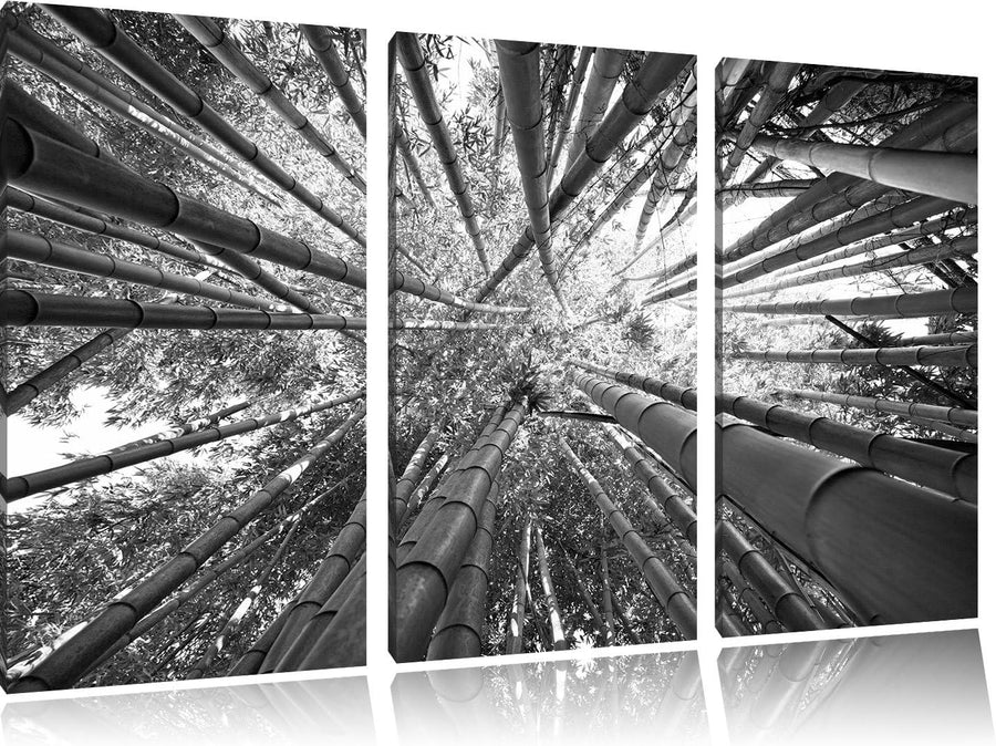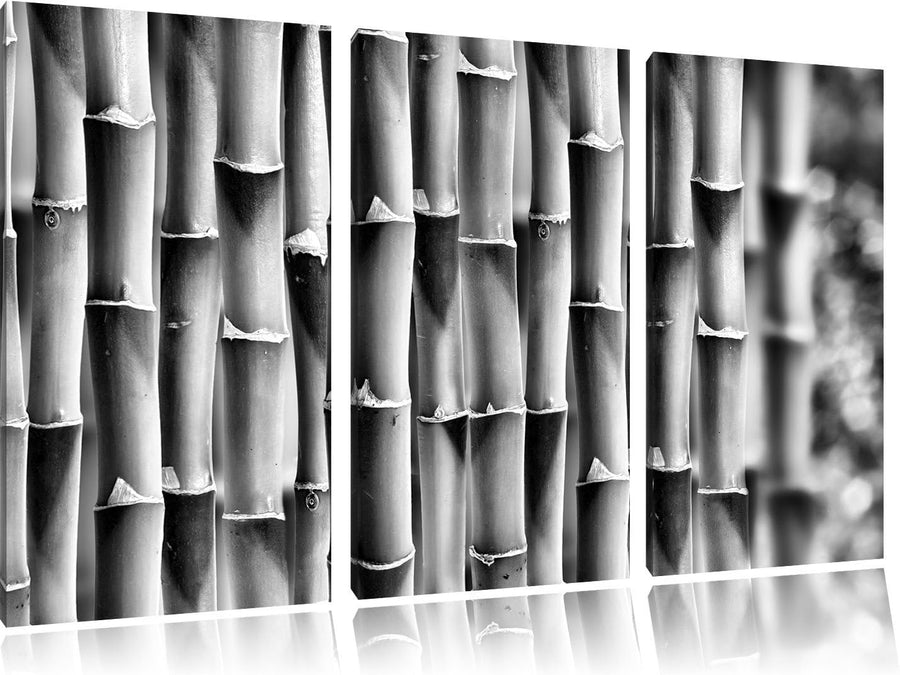 Pixxprint Grüner Bambus Kunst B&W als Leinwandbild | Grösse: 3 Teilig (120x80) | Wandbild| Kunstdruc