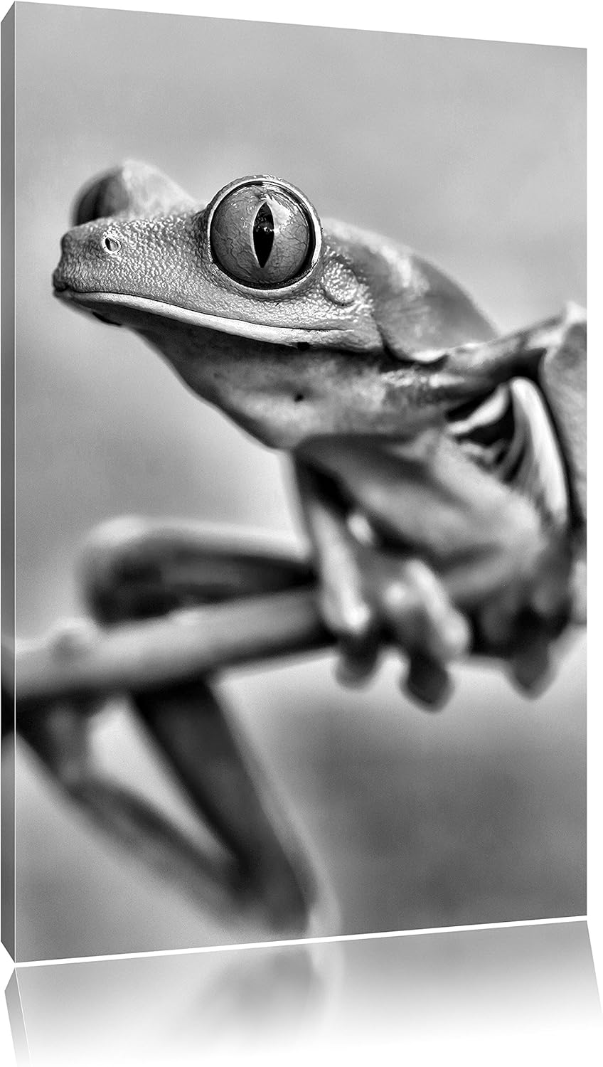 Pixxprint Grüner Kleiner Frosch auf AST als Leinwandbild/Grösse: 100x70 cm/Wandbild/Kunstdruck/ferti
