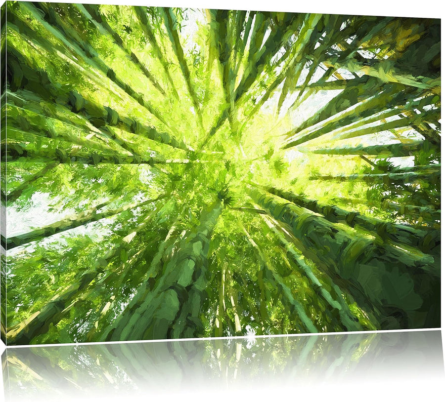 Pixxprint Grüner Bambus Kunst als Leinwandbild | Grösse: 100x70 cm | Wandbild | Kunstdruck | fertig