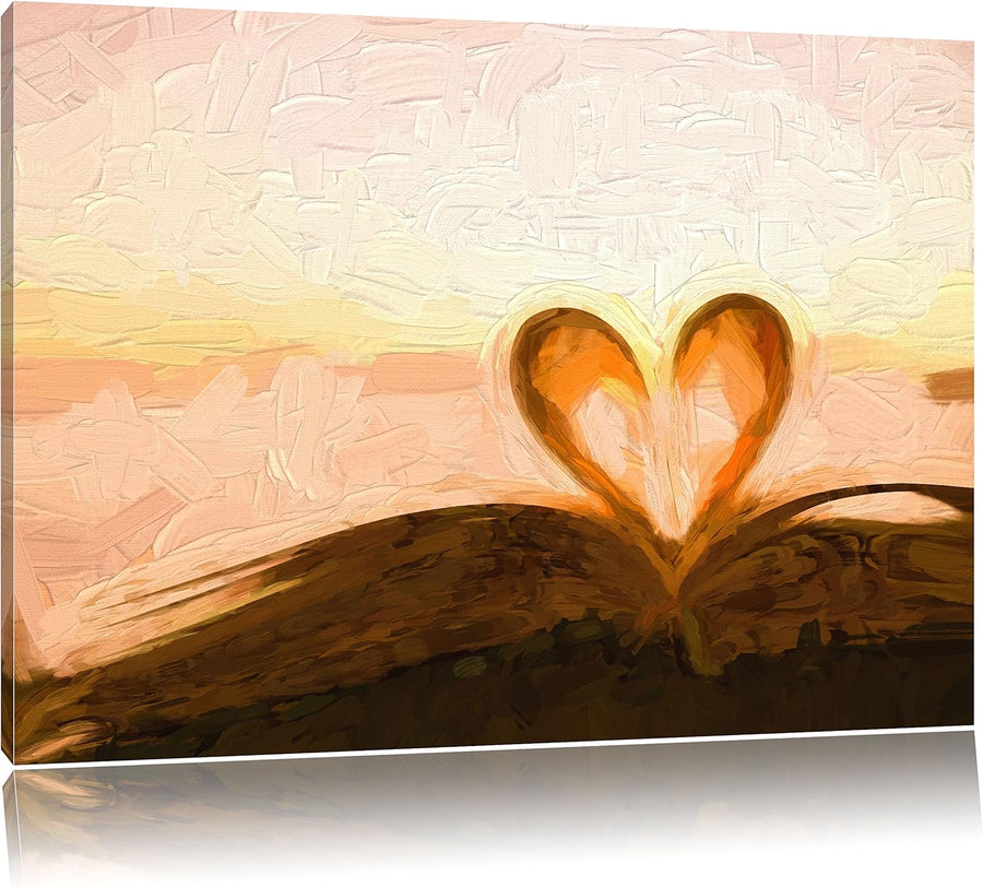 Pixxprint Herz aus Einer Buchseite als Leinwandbild/Grösse: 100x70 cm/Wandbild/Kunstdruck/fertig bes