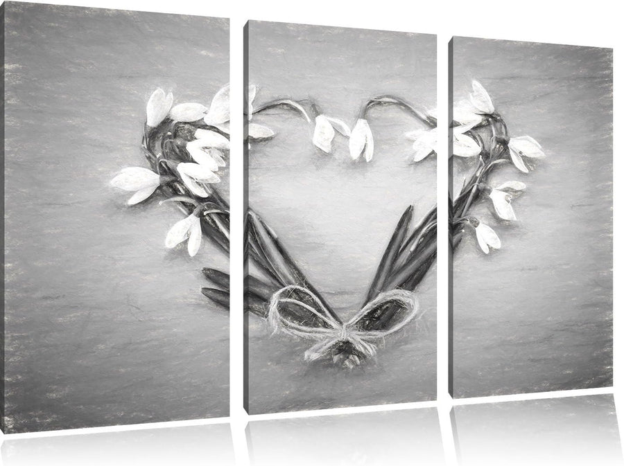 Pixxprint Herz aus Blumen Kunst / 3-Teilig/Gesamtmass 120cm Leinwandbild bespannt auf Holzrahmen/Wan
