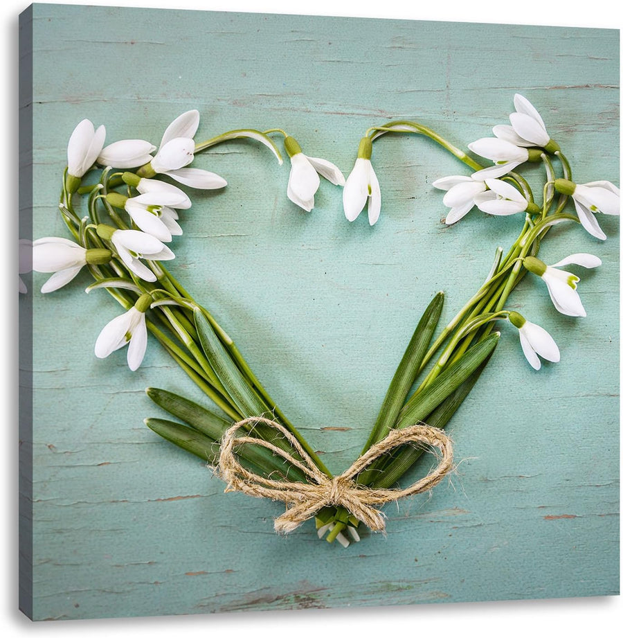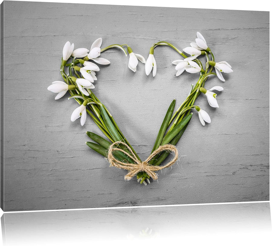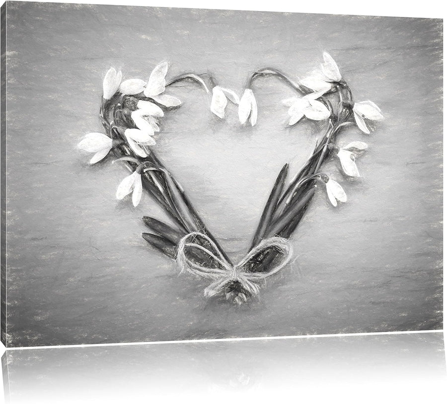 Pixxprint Herz aus Blumen Kunst / 100x70cm Leinwandbild bespannt auf Holzrahmen/Wandbild Kunstdruck