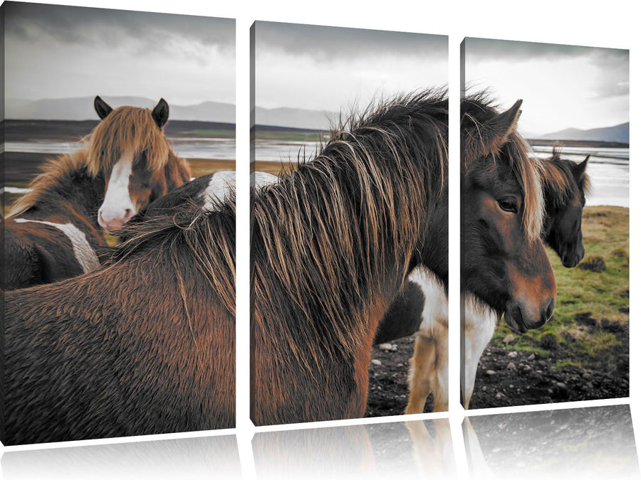 Pixxprint Herde aus schönen Wildpferden / 3-Teilig/Gesamtmass 120cm Leinwandbild bespannt auf Holzra