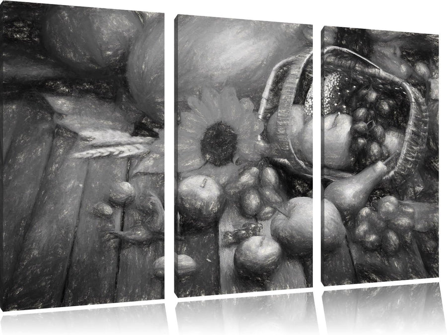 Pixxprint Herbstlicher Obstkorb Kohle Zeichnung Effekt 3-Teiler Leinwandbild 120x80 Bild auf Leinwan