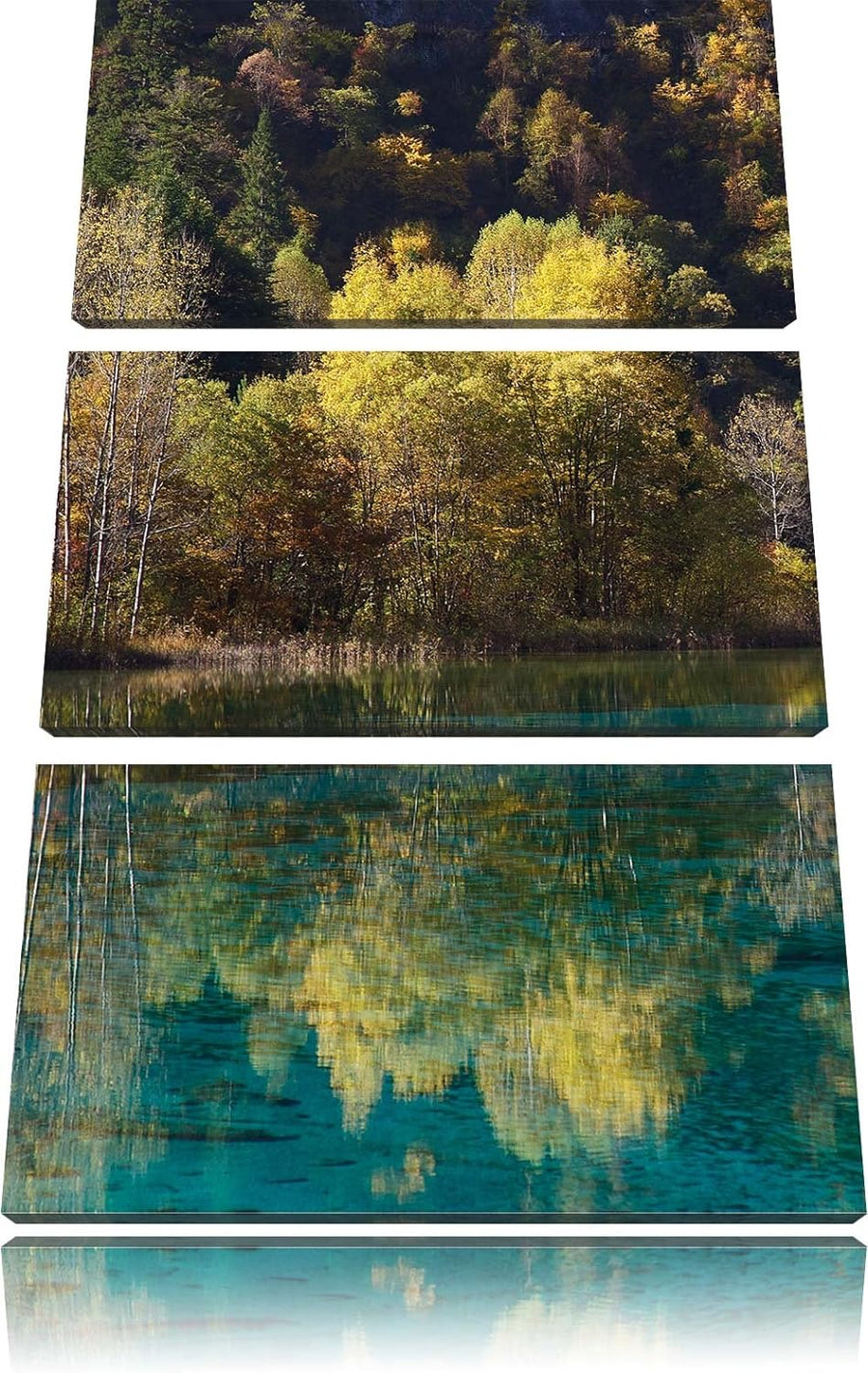 Pixxprint herbstlicher Wald am See als Leinwandbild/Grösse: 3 Teilig (120x80) cm/Wandbild/Kunstdruck
