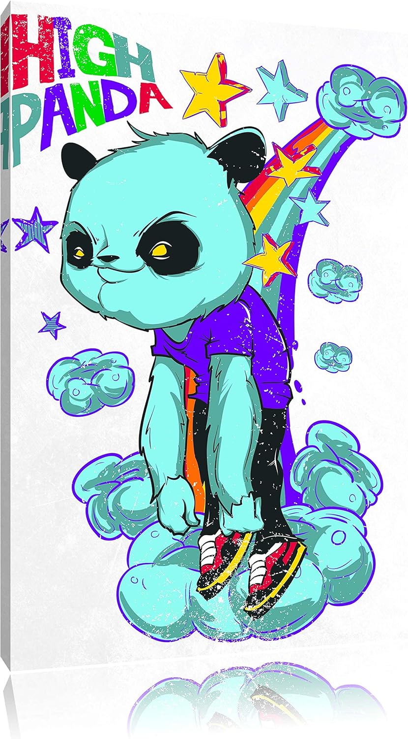 Pixxprint High Panda White Bild auf Leinwand, XXL riesige Bilder fertig gerahmt mit Keilrahmen, Kuns