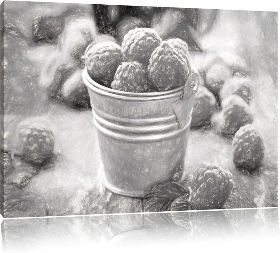 Pixxprint Himbeeren im Blecheimer als Leinwandbild/Grösse: 100x70 / Wandbild/Kunstdruck/fertig bespa