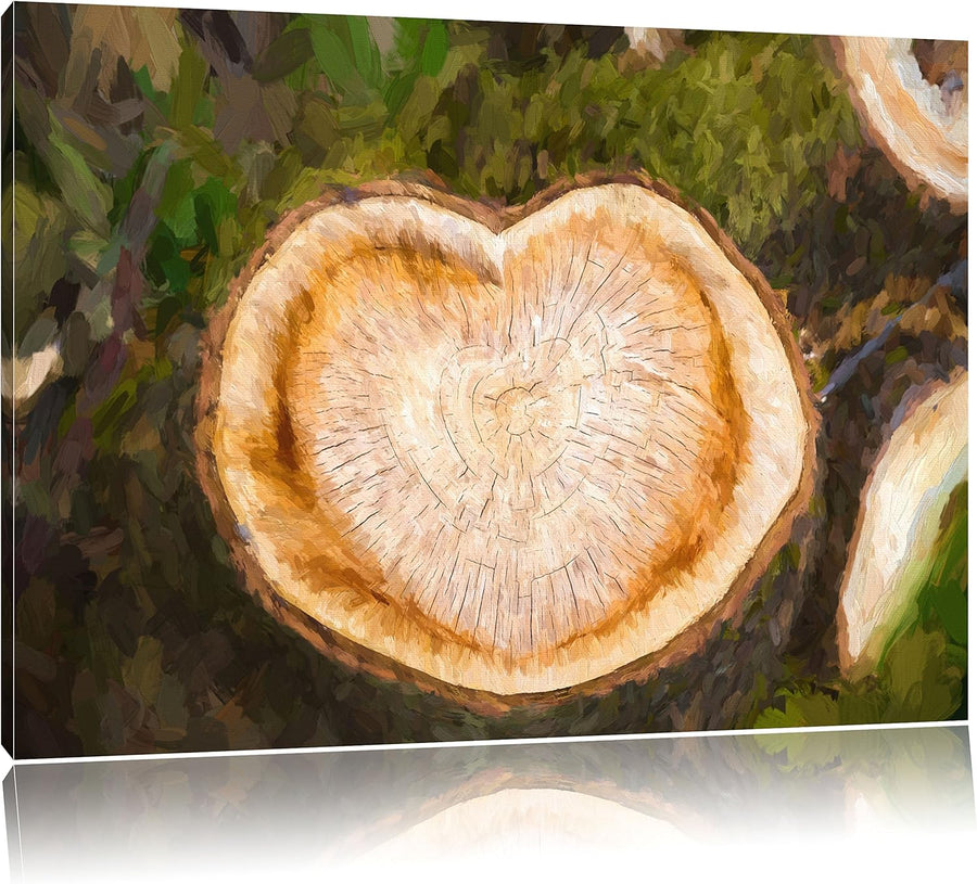 Pixxprint Herzförmige Jahresringe am Baumstamm Kunst Pinsel Effekt, Format: 100x70 auf Leinwand, rie