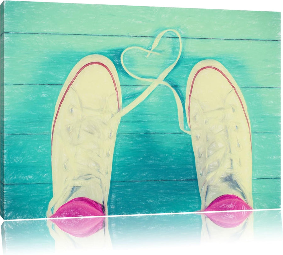 Pixxprint Herzform aus Schnürsenkeln Bunstift Effekt, Format: 100x70 auf Leinwand, XXL riesige Bilde