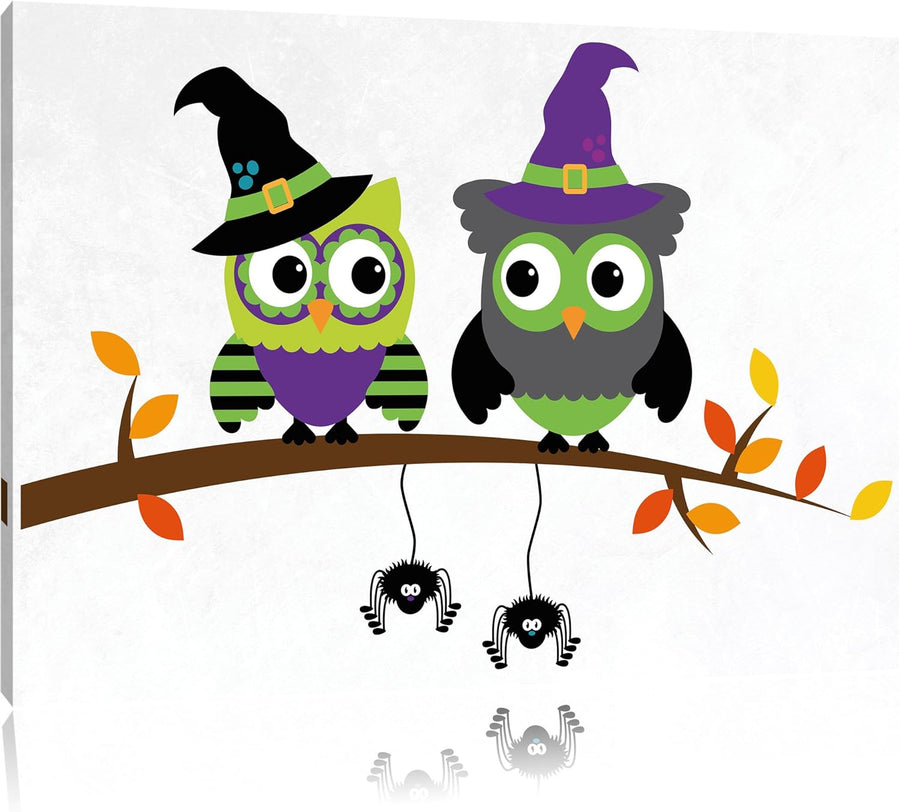 Pixxprint Hexen Eulen als Leinwandbild/Grösse: 100x70 / Wandbild/Kunstdruck/fertig bespannt, 100x70