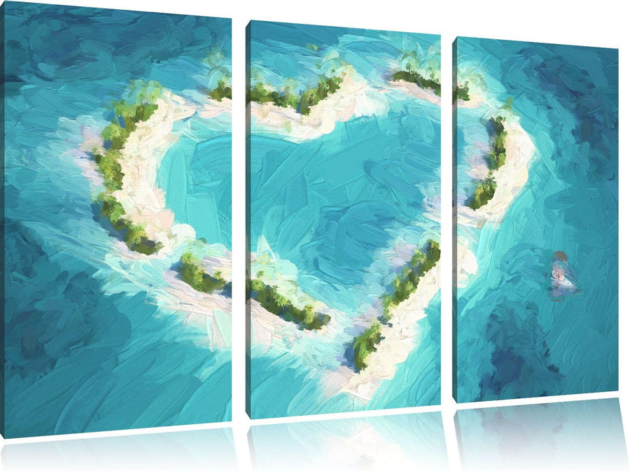 Pixxprint Herz geformt aus Inseln / 3-Teilig/Gesamtmass 120cm Leinwandbild bespannt auf Holzrahmen/W