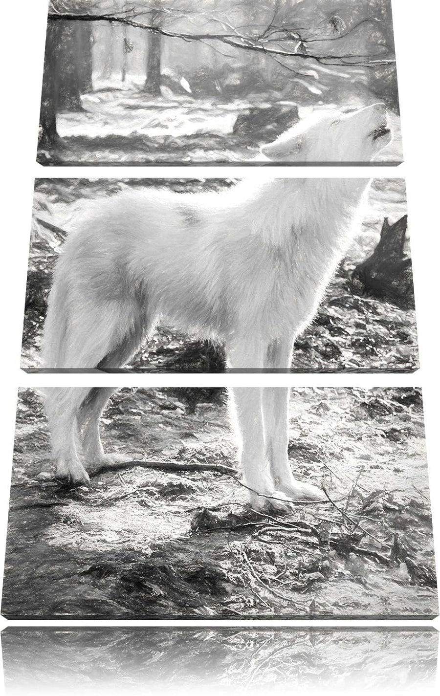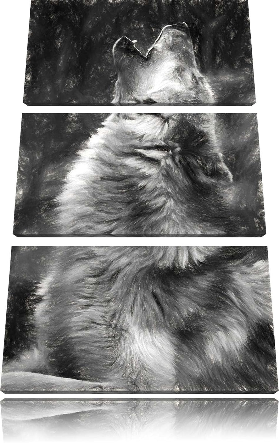 Pixxprint Heulender Wolf als Leinwandbild/Grösse: 3 Teilig (120x80) cm/Wandbild/Kunstdruck/fertig be
