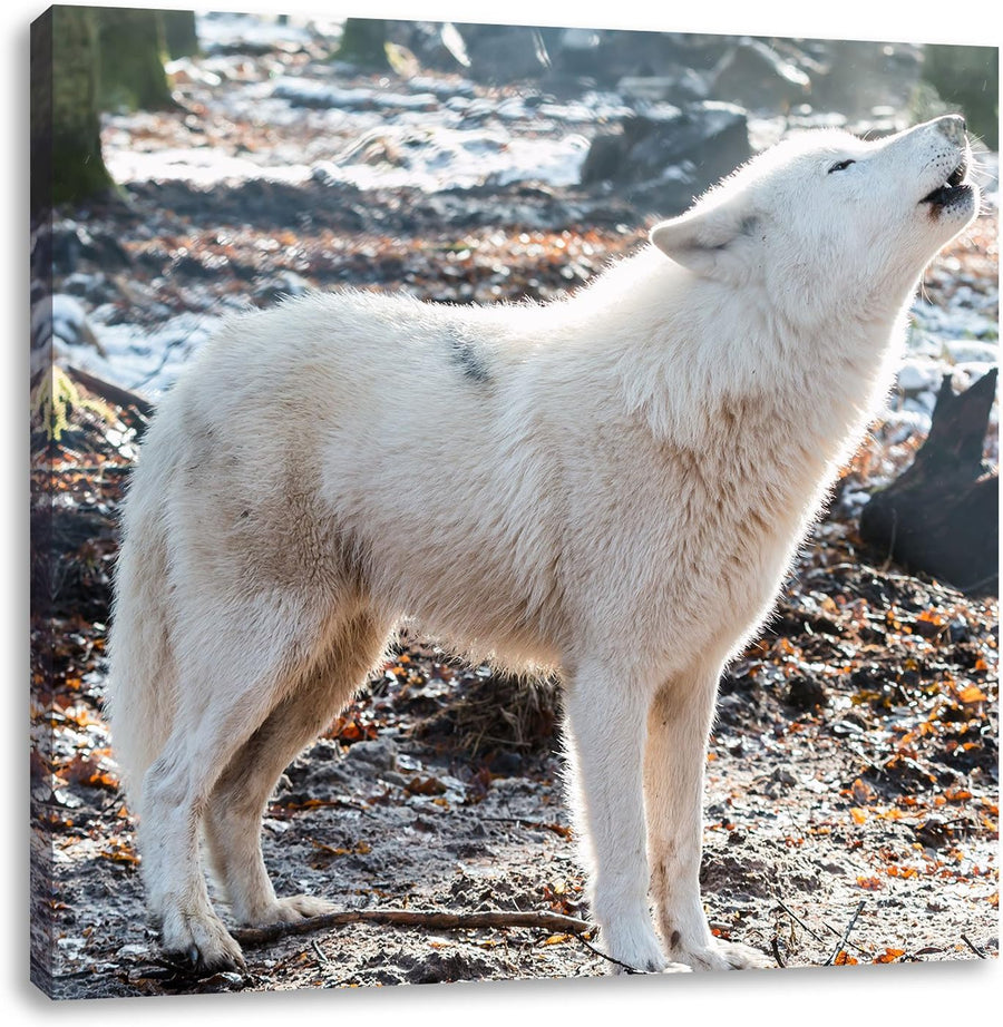 Pixxprint Heulender Wolf im Mondlicht als Leinwandbild/Grösse: 100x70 / Wandbild/Kunstdruck/fertig b