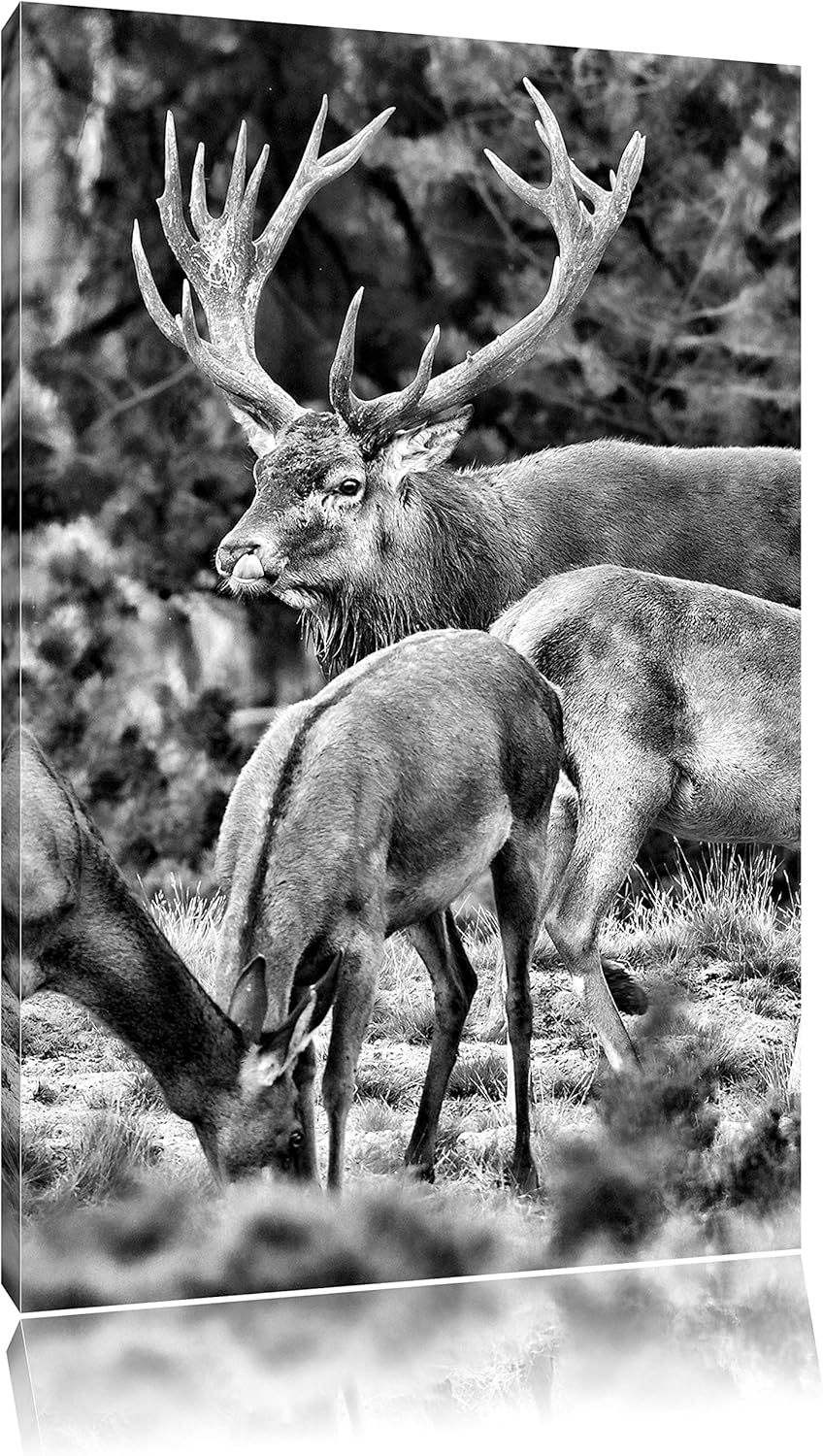 Pixxprint Hirschfamilie Wiese / 100x70cm Leinwandbild bespannt auf Holzrahmen/Wandbild Kunstdruck De