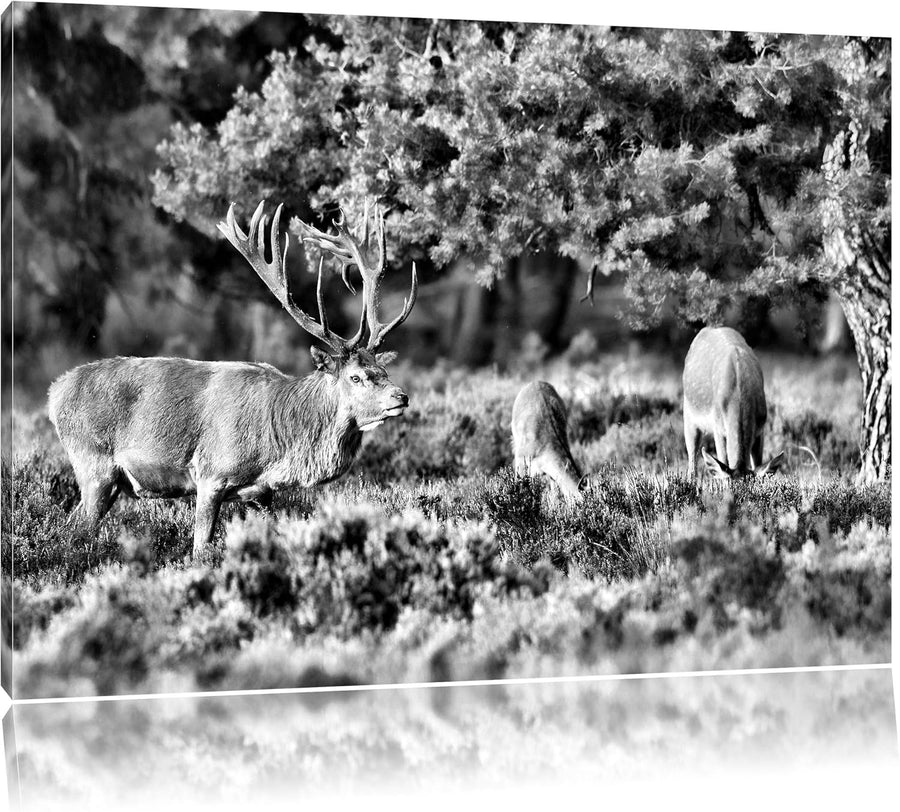 Pixxprint Hirschfamilie auf Waldlichtung als Leinwandbild/Grösse: 100x70 cm/Wandbild/Kunstdruck/fert