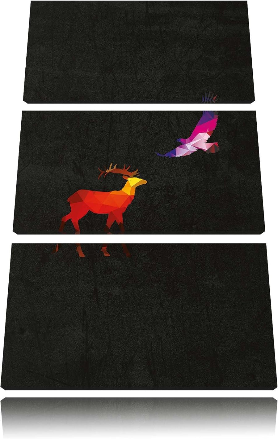 Pixxprint Hirsch und Adler als Leinwandbild/Grösse: 3 Teilig (120x80) cm/Wandbild/Kunstdruck/fertig