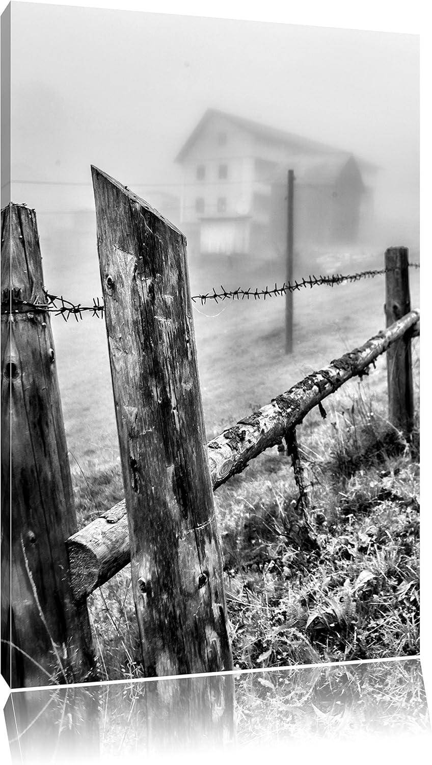 Pixxprint Holzzaun auf Wiese als Leinwandbild/Grösse: 100x70 / Wandbild/Kunstdruck/fertig bespannt,