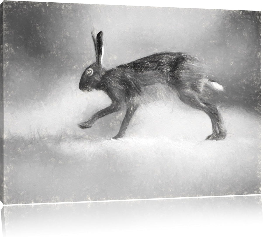 Pixxprint hoppelnder Hase / 100x70cm Leinwandbild bespannt auf Holzrahmen/Wandbild Kunstdruck Dekora