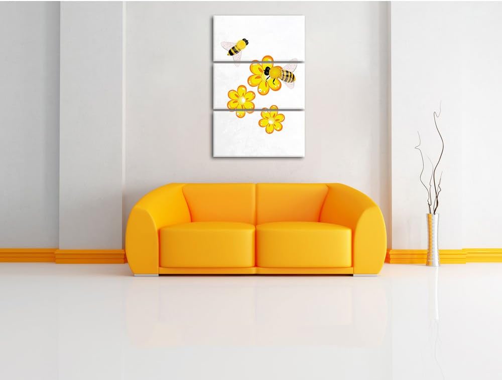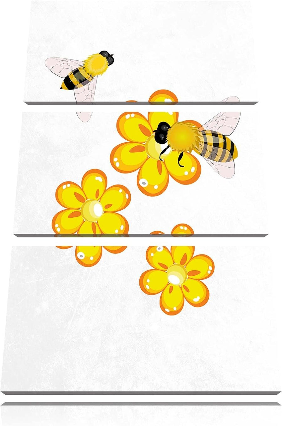 Pixxprint hübsche Bienen mit Blumen als Leinwandbild/Grösse: 3 Teilig (120x80) cm/Wandbild/Kunstdruc