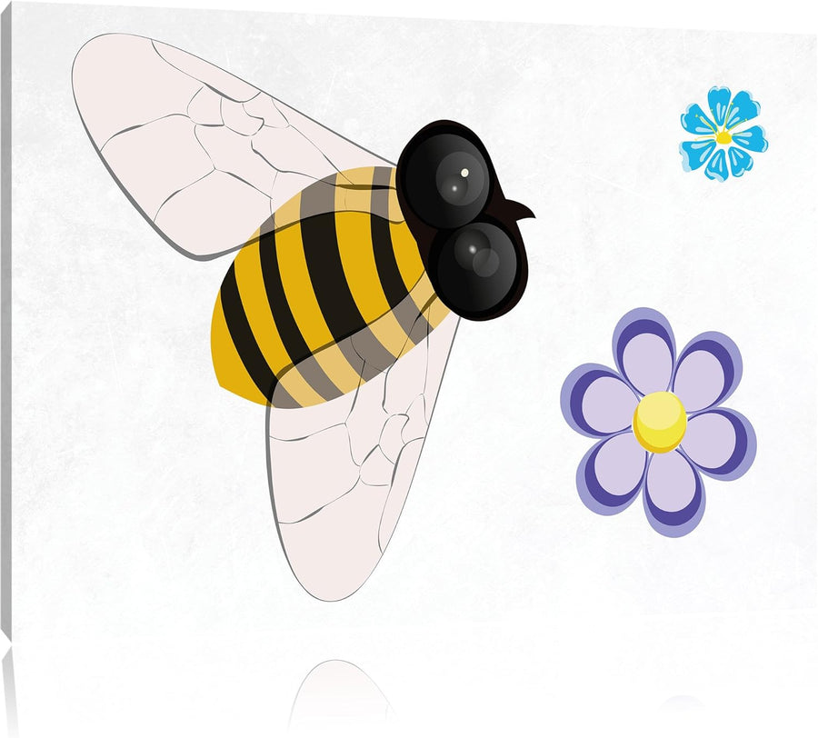 Pixxprint Hübsche Biene mit Blumen als Leinwandbild/Grösse: 100x70 cm/Wandbild/Kunstdruck/fertig bes
