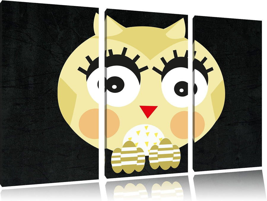Pixxprint Hübsche gelbe überraschte Eule / 3-Teilig/Gesamtmass 120cm Leinwandbild bespannt auf Holzr