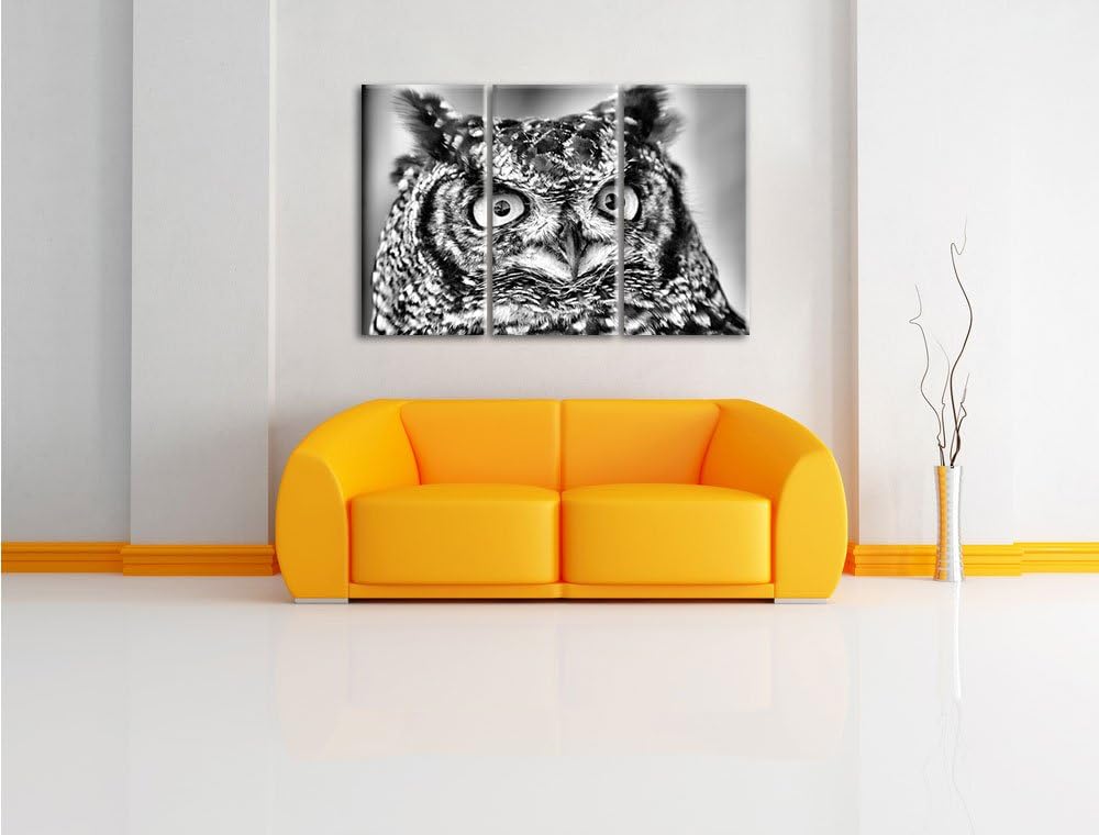 Pixxprint hübsche Waldohreule als Leinwandbild/Grösse: 3 Teilig (120x80) cm/Wandbild/Kunstdruck/fert
