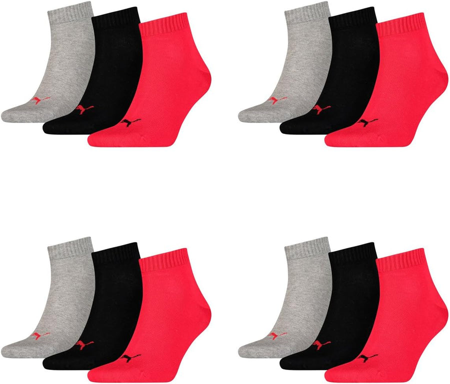 Puma Herren Sportsocke Quarter 3P 43/46 232 - Black / Red, 43/46 232 - Black / Red