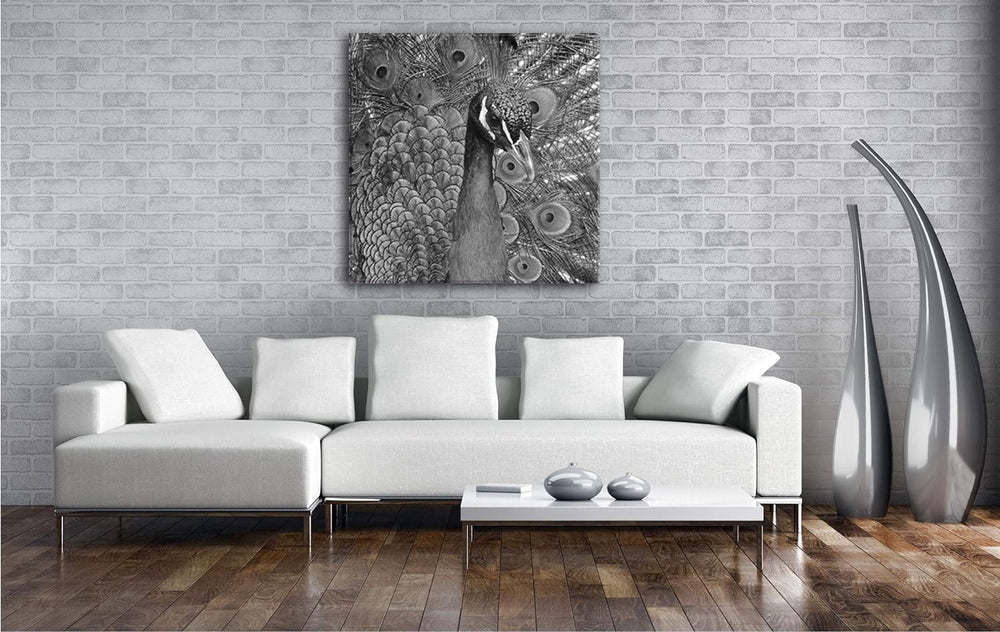 deyoli Bezaubernder Pfau Format: 70x70 Effekt: Schwarz&Weiss als Leinwandbild, Motiv fertig gerahmt