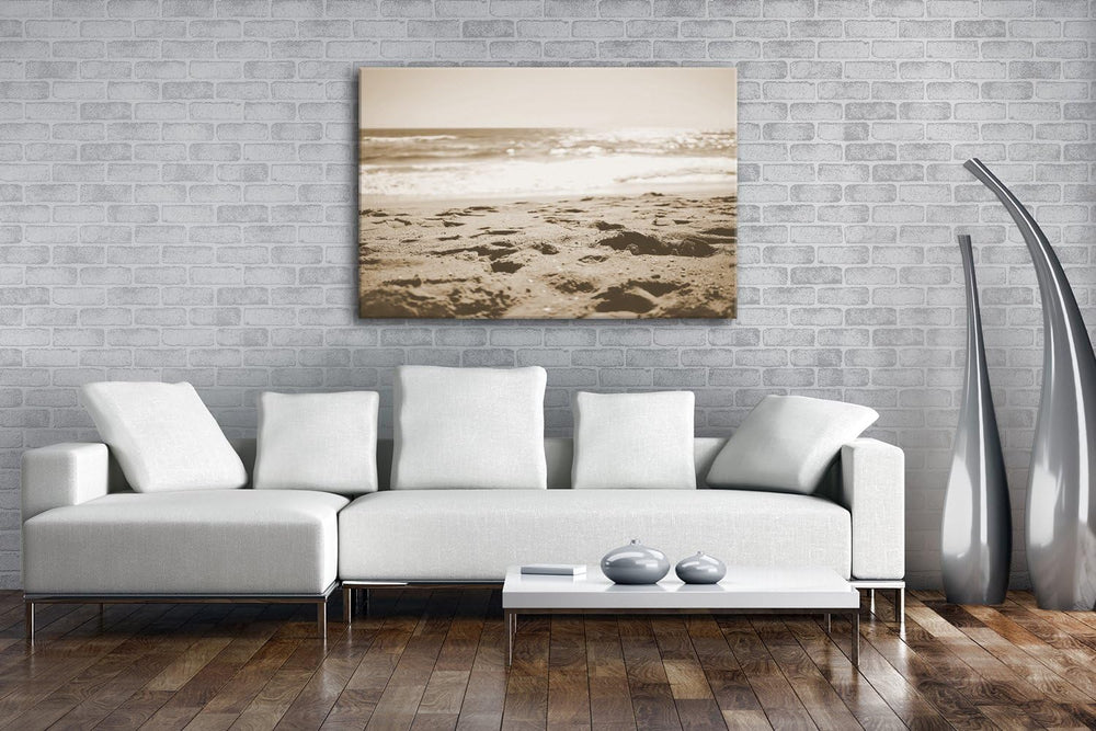 deyoli bezaubernder Sandstrand Format: 60x40 Effekt: Sepia als Leinwand, Motiv fertig gerahmt auf Ec