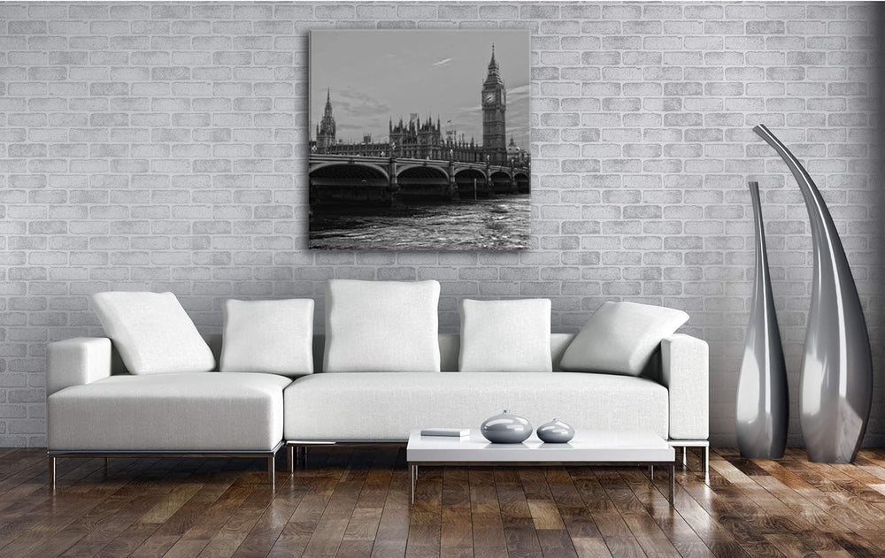 deyoli Big Ben in London Format: 70x70 Effekt: Schwarz&Weiss als Leinwandbild, Motiv auf Echtholzrah
