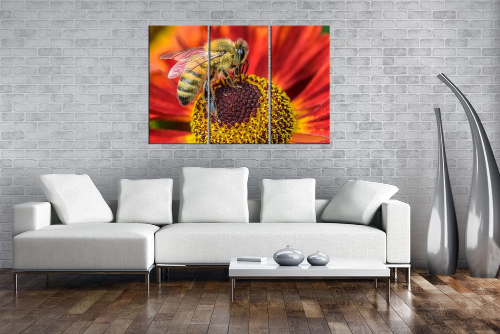 deyoli Biene beim Pollen sammeln Format: 3Teilig als Leinwandbild, Motiv fertig gerahmt auf Echtholz
